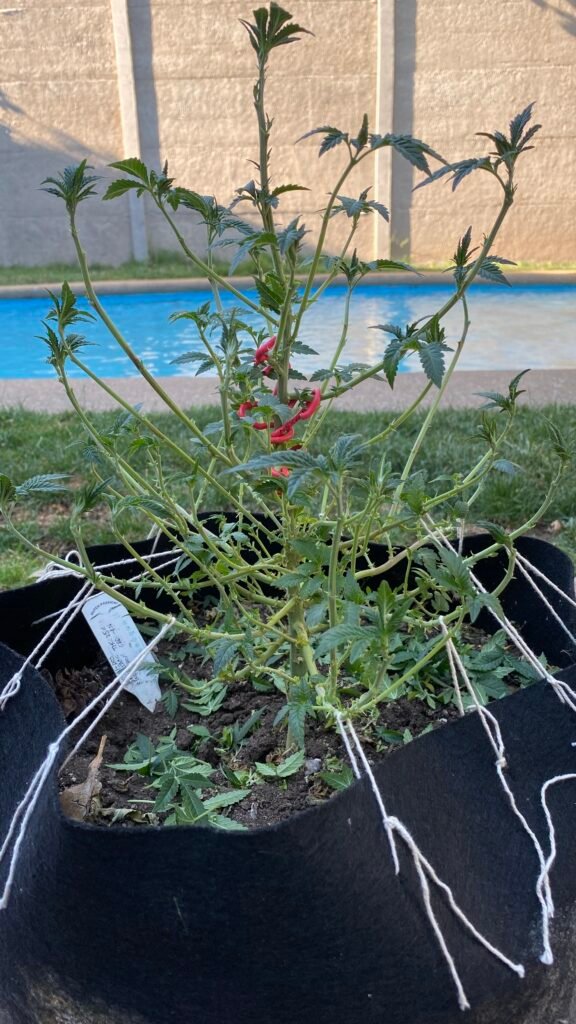 Esta semilla fue germinada directo a tierra en su maceta de un litro para posteriormente ser transplantada a su maceta final de 20 litros de geotextil. Este tipo de maceta ayuda a que las raices puedan desarrollarse mejor.