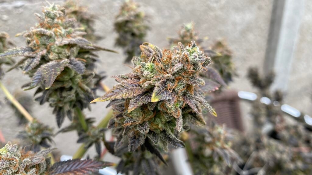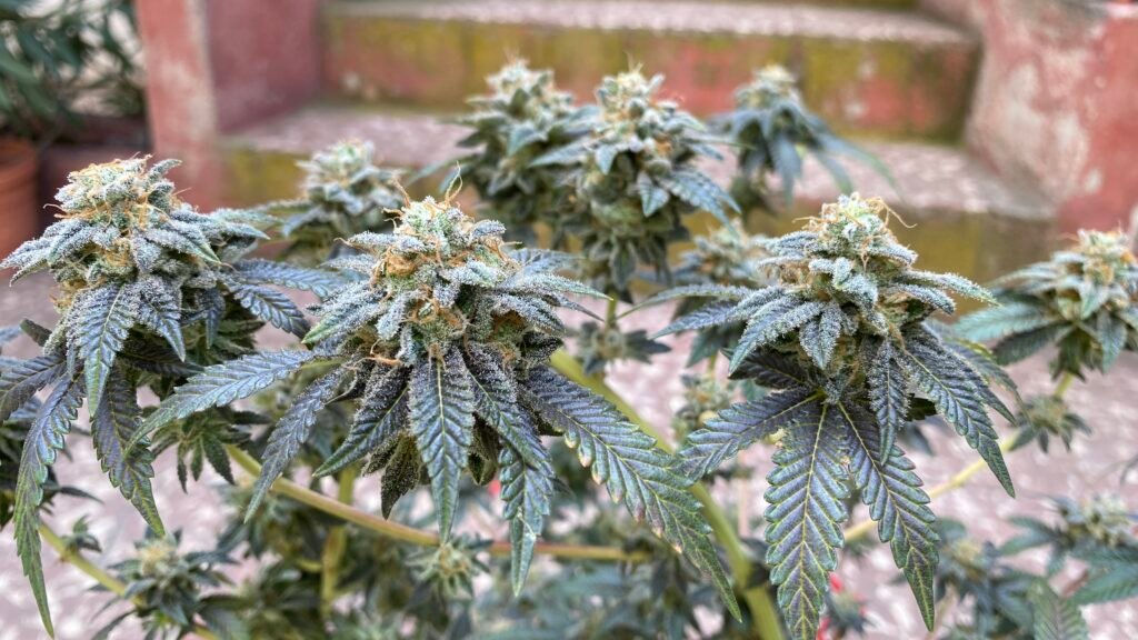 Esta cepa todo el cultivo fue de color verde oscuro pero las 3 ultimas semanas saqué la maceta al otoño del exterior para ver qué cambio tenia en sus tonalidades y vaya que las tuvo, pasó del verde oscuro al morado inteso con tonos verdosos.