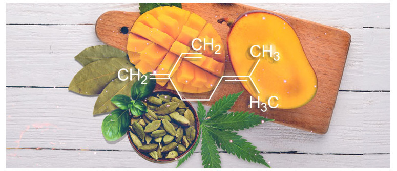 El mirceno aporta aromas muy buenos a ciertas variedades de cannabis. Al final de la floración y después de la cosecha, estos cogollos desprenden aromas de almizcle, tierra, fruta y matices de clavo.